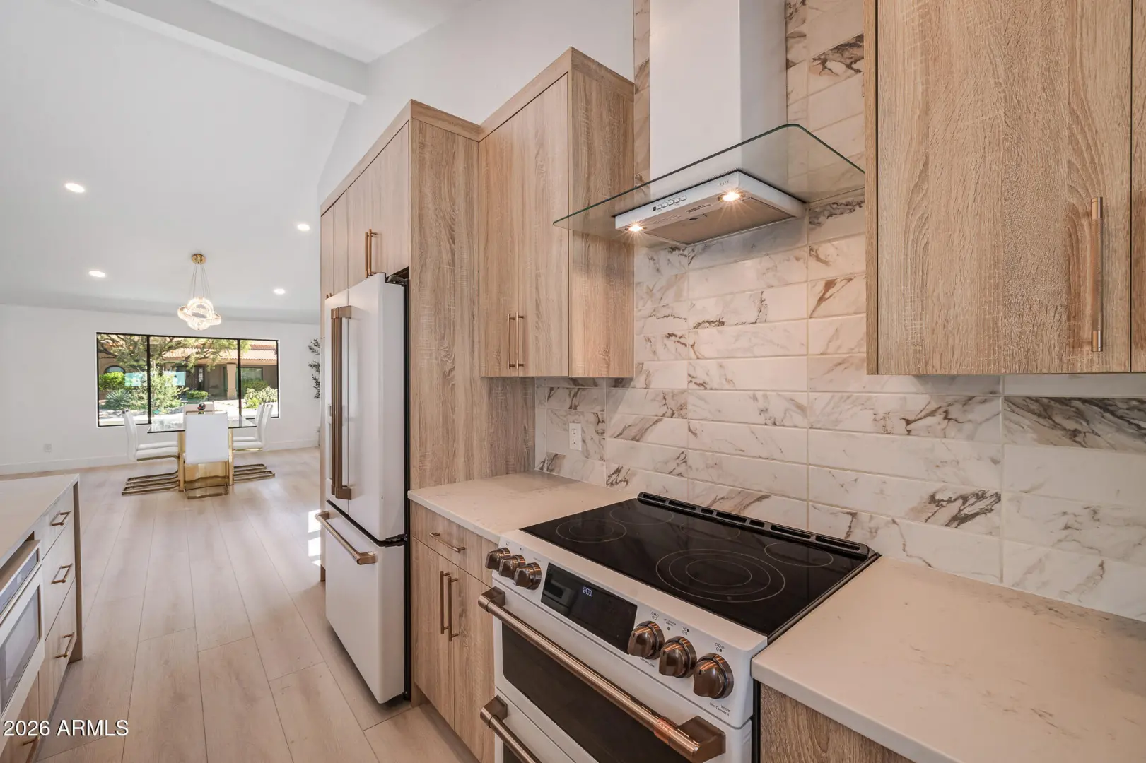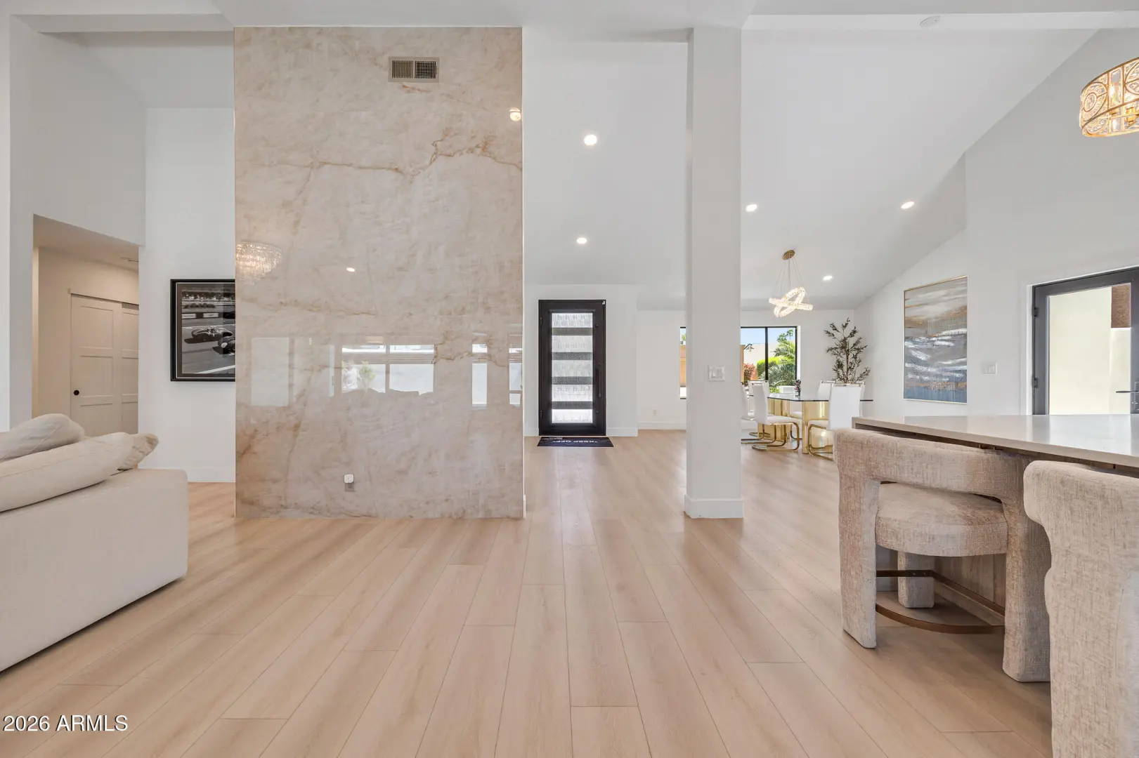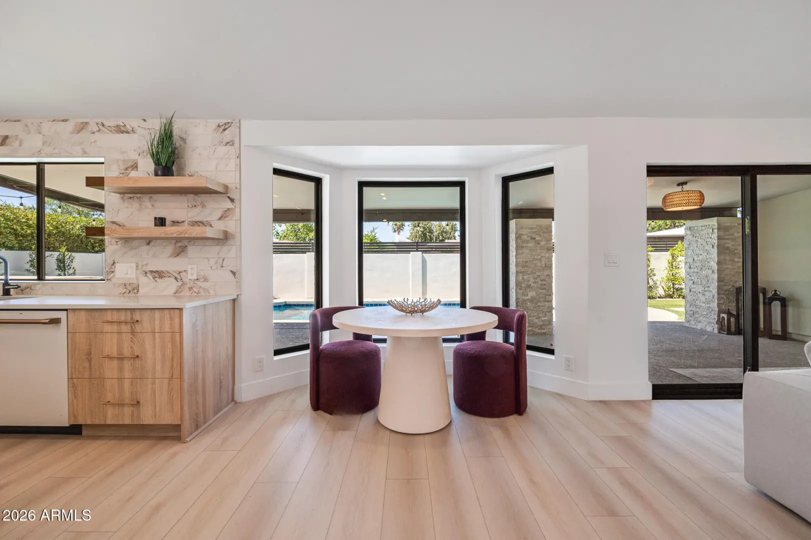 Fully re-imagined and recently refreshed, this modern Scottsdale home blends clean design with effortless livability. The open-concept layout showcases wide-plank flooring, warm wood cabinetry, statement lighting, and a sleek chef's kitchen that flows seamlessly into the main living space. With 4 bedrooms and 2.5 baths, there's room to live, work, and unwind in style. Step outside to a private backyard retreat featuring a sparkling pool, built-in BBQ, low-maintenance turf, and lush ficus-lined privacy shrubs. Located in one of Scottsdale's most sought-after areas, within the coveted ''Three C's'' school district -Cochise, Cocopah, and Chaparral.