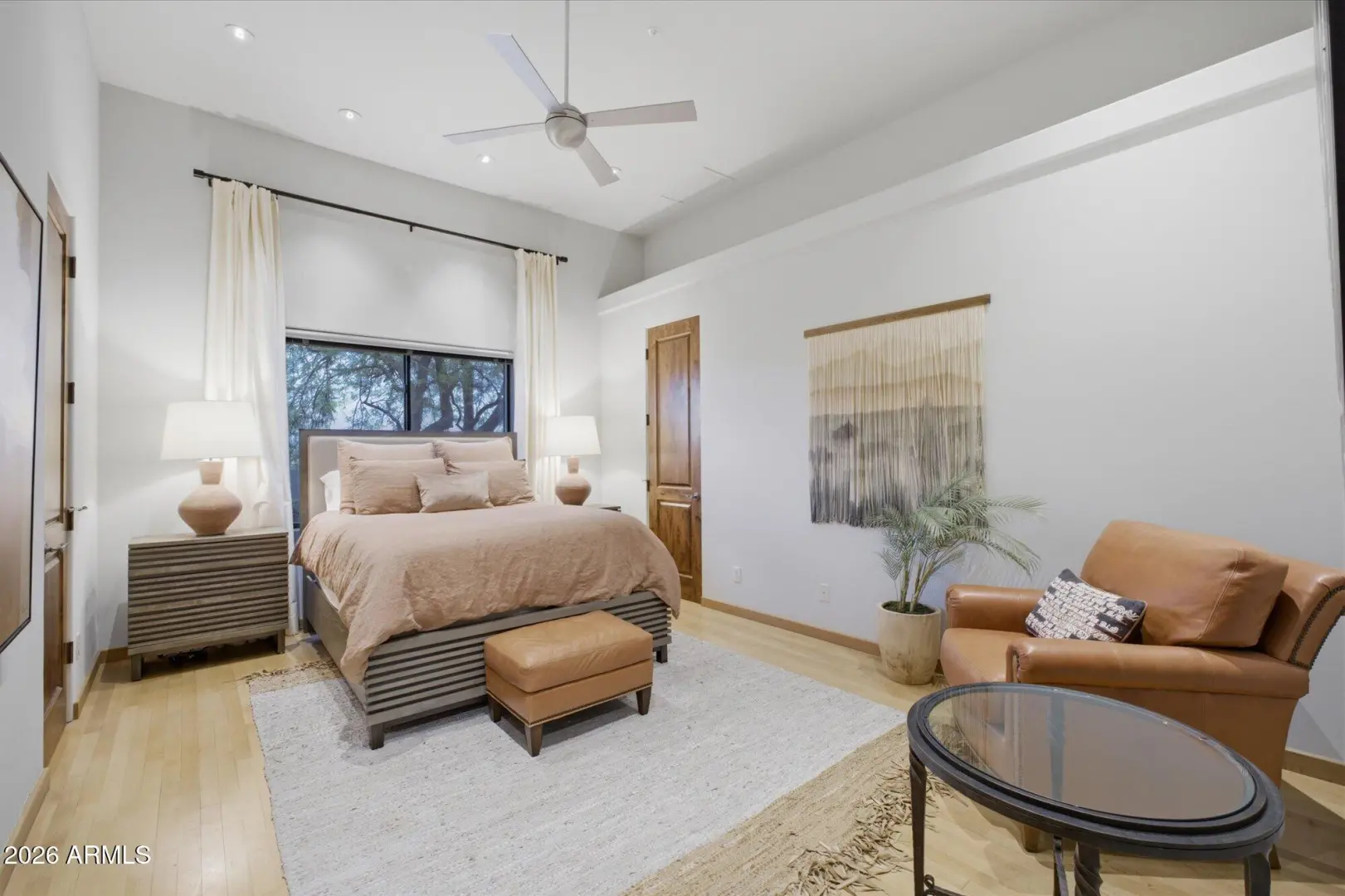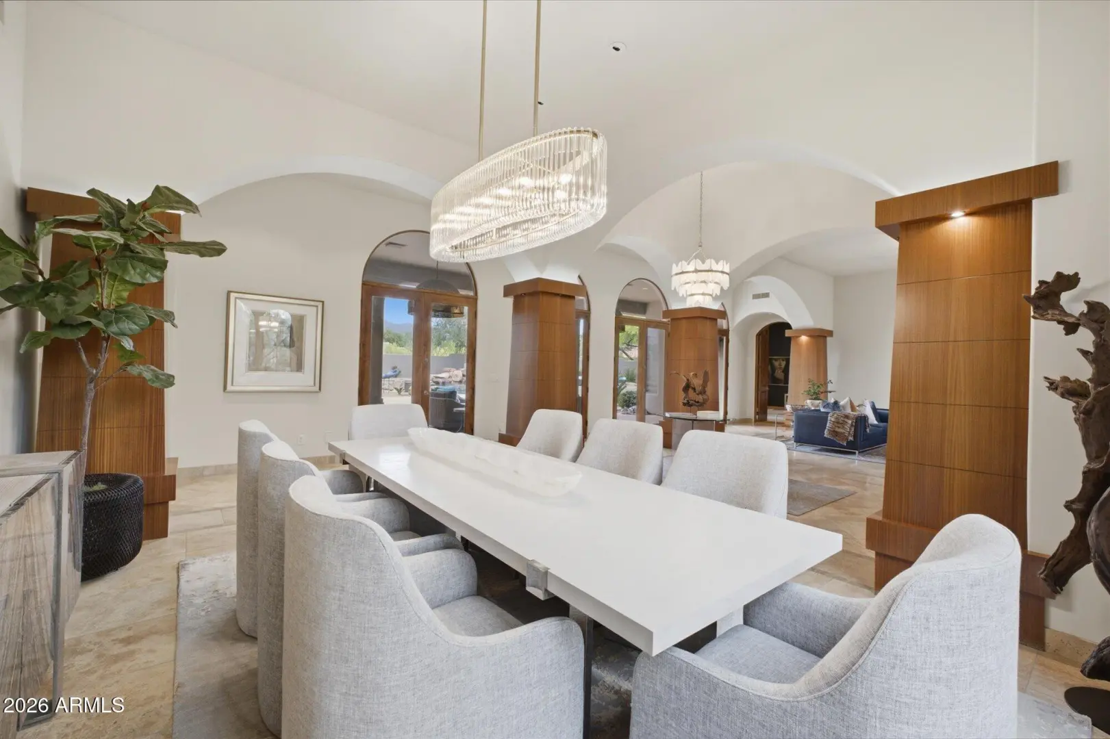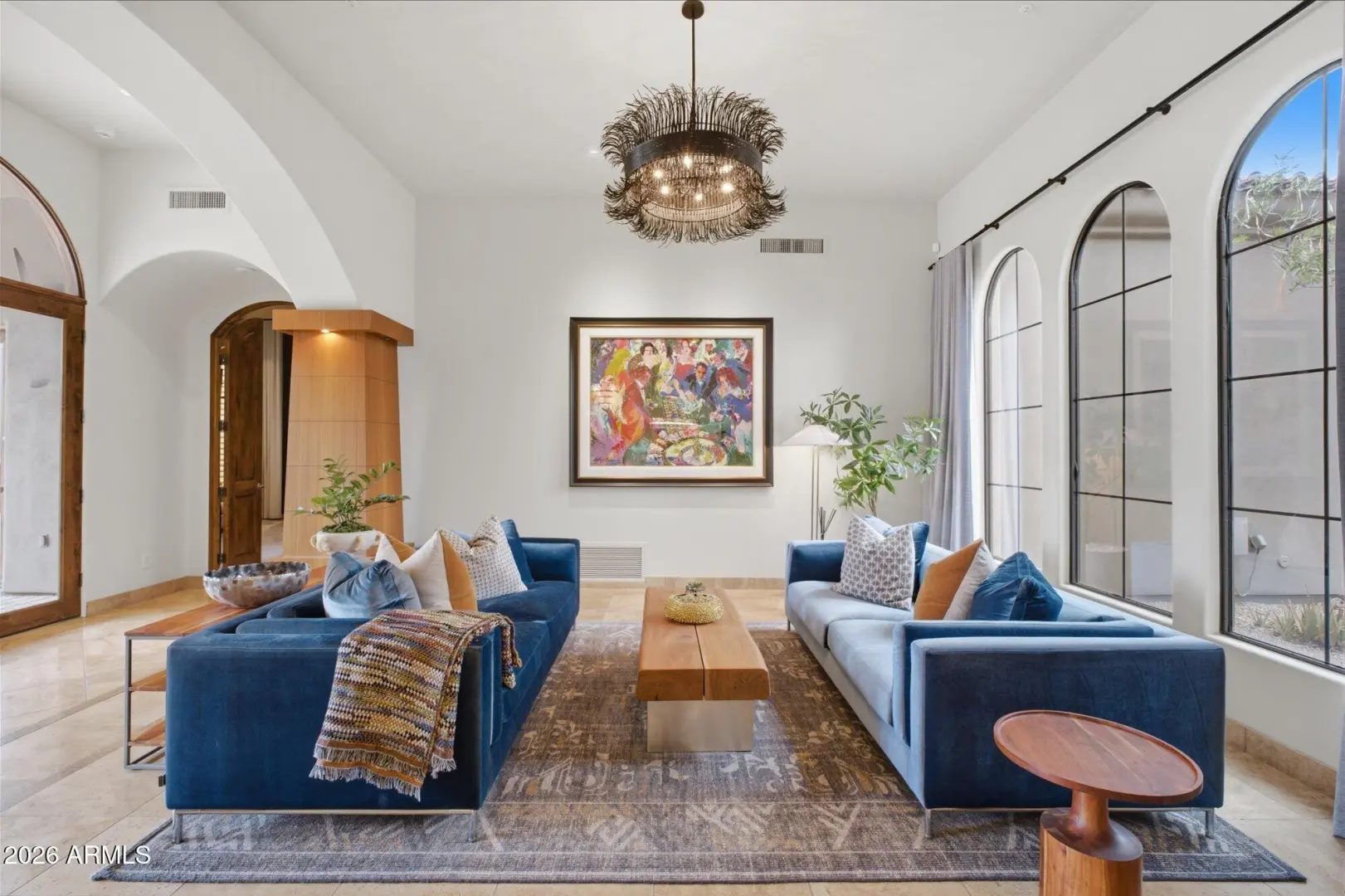 Experience this stunning, single-level home located w/in the gated community of Los Diamantes. Offering 5 beds & 5 baths, this home radiates warmth w a contemporary flair. The office has a separate entrance w its own en-suite bath which provides flexibility as a fifth bedroom, guest quarters, or private workspace. The primary suite is a true retreat, featuring a completely remodeled bathroom, dual walk-in closets, & private sitting room complete w fireplace & electric blinds that open to million-$ views of the McDowell Mtns. Three additional en-suite bedrooms, each w walk-in closets, provide space & privacy for family or guests. At the center of the home a large great room is open to a clean-lined chef's kitchen-ideal for gathering and entertaining. Enjoy Arizona's indoor/outdoor lifestyle