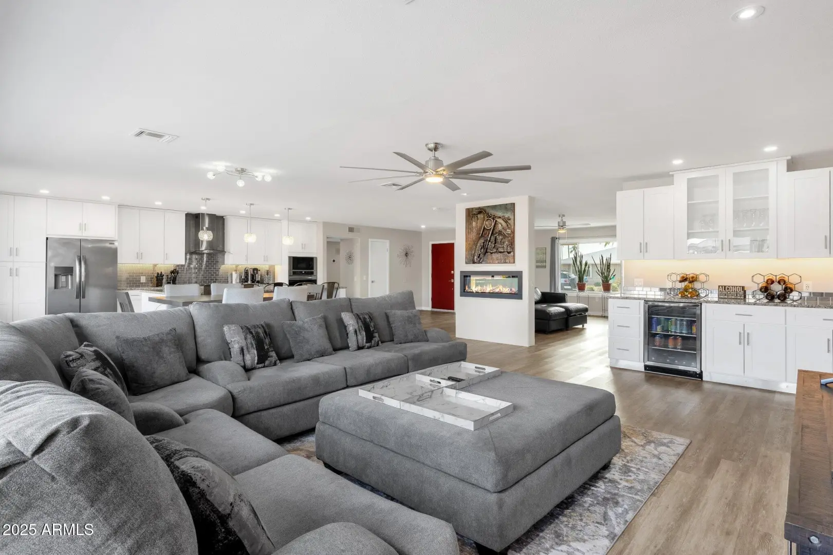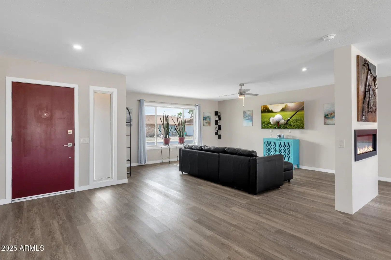 Owned solar keeps electric bills low in this thoughtfully remodeled Sun City West home. The spacious kitchen flows to an open concept great room and out to the backyard for effortless indoor-outdoor living. A new 20'x30' paver patio with a 12'x20' pergola invites you to relax and enjoy Arizona sunsets. Inside, two en-suite bedrooms offer privacy and comfort, with the second bath also opening to the hall for guests. An oversized laundry room provides space for a home office, hobbies, or extra storage. Built-in cabinets in the garage add even more organized storage. Located just across from Beardsley Recreation Center for easy access to community amenities.