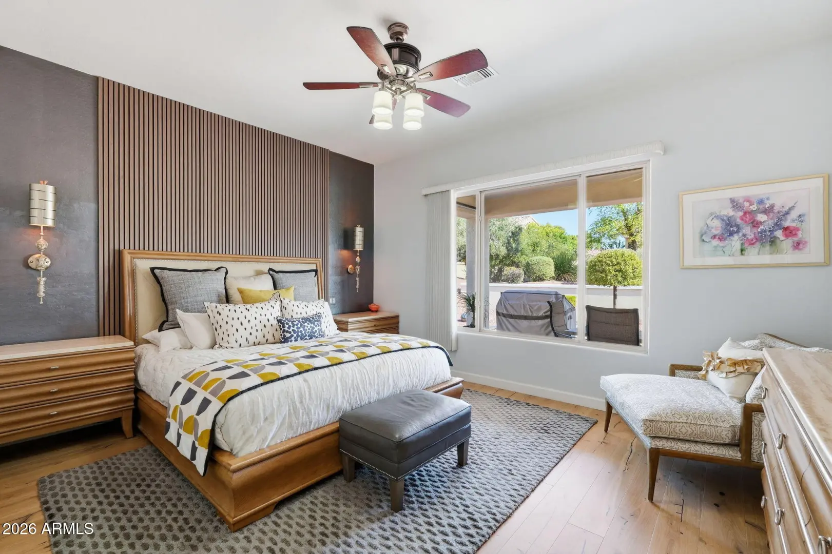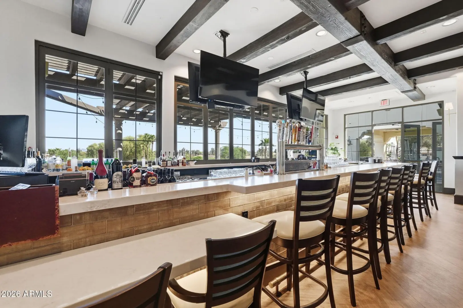 Welcome to this stunning remodeled home located in the highly sought-after, guard-gated Corte Bella Country Club! This beautiful home offers modern finishes, thoughtful design, and exceptional functionality throughout. Brand new wood flooring flows throughout the main living areas with the great room featuring surround sound speakers, a custom-built entertainment wall with ample space and dimmable accent lighting. Entertain in style with the stunning custom bar area, complete with soft-close cabinetry, a gorgeous granite countertop, a built-in refrigerator and freezer drawer, beverage/wine cooler, and additional storage for games and accessories. A matching movable granite bar table makes hosting guests easy! The spacious primary bedroom features a beautiful wood accent wall that adds (mor