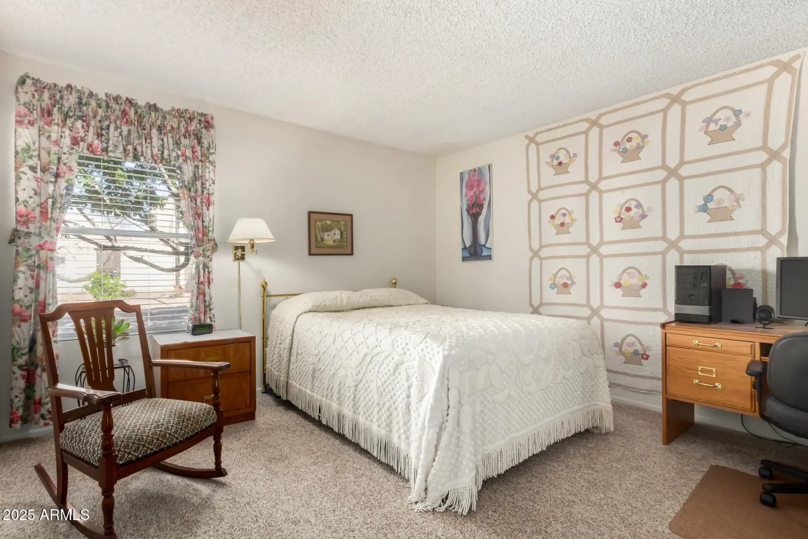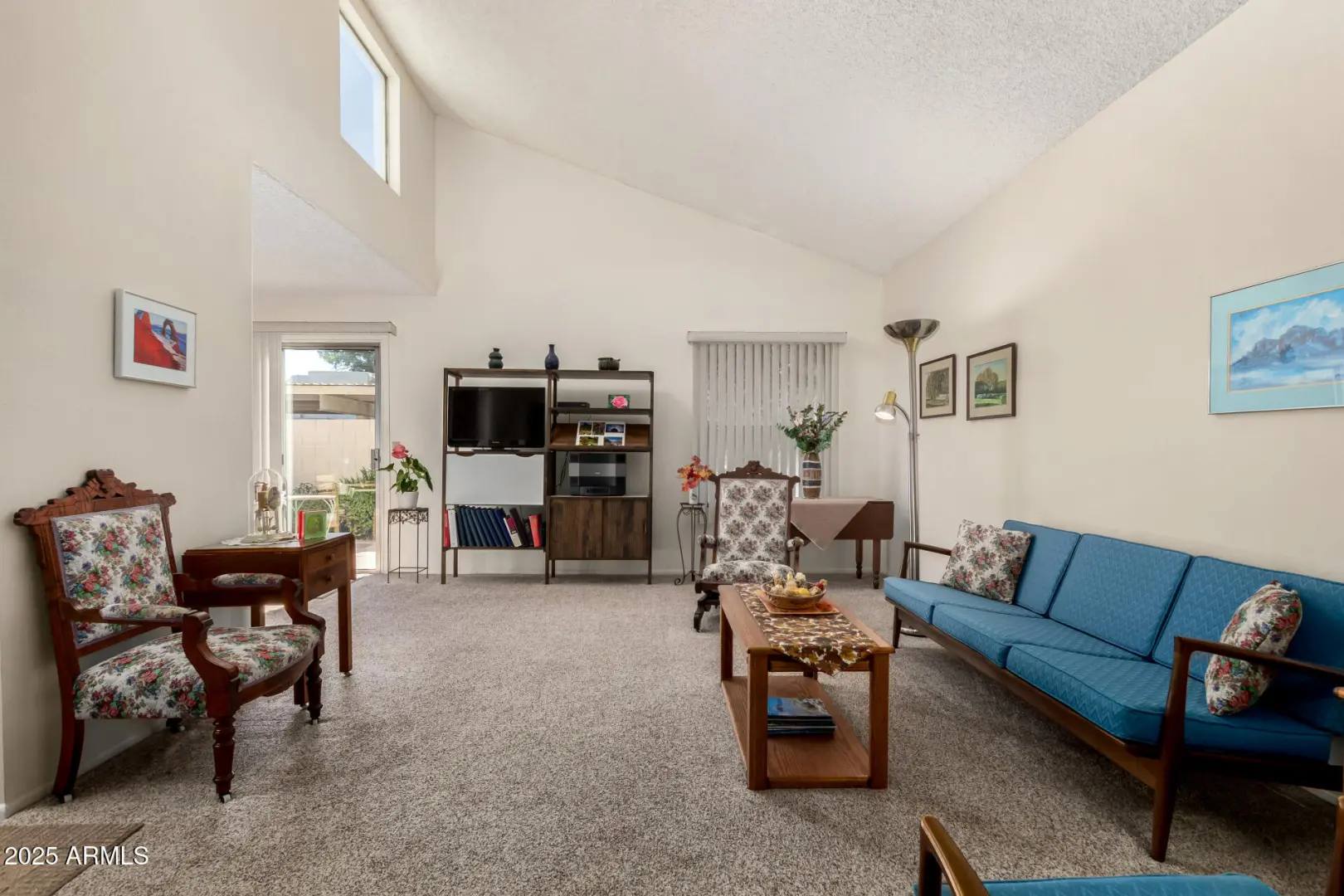 This well-maintained single-story end-unit townhome offers a thoughtful layout and a bright, welcoming feel from the moment you walk in. Vaulted ceilings elevate the main living area, creating an open atmosphere that connects seamlessly to the kitchen and dining space. The primary bedroom includes a private ensuite bathroom, while the secondary bedroom has convenient access to the full hall bath. Practical features such as in-unit laundry, two designated parking spaces, and a private outdoor storage room add meaningful value to the home. Ideally positioned within a well-kept Mesa community and minutes from shopping, dining, MCC, and major freeway access, this residence delivers a balanced blend of comfort, functionality, and location