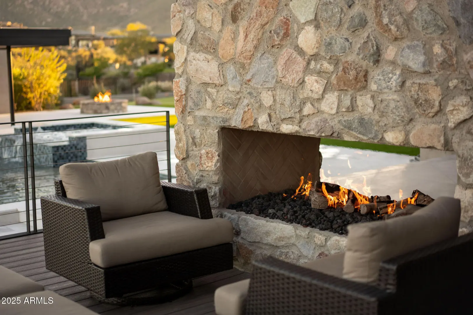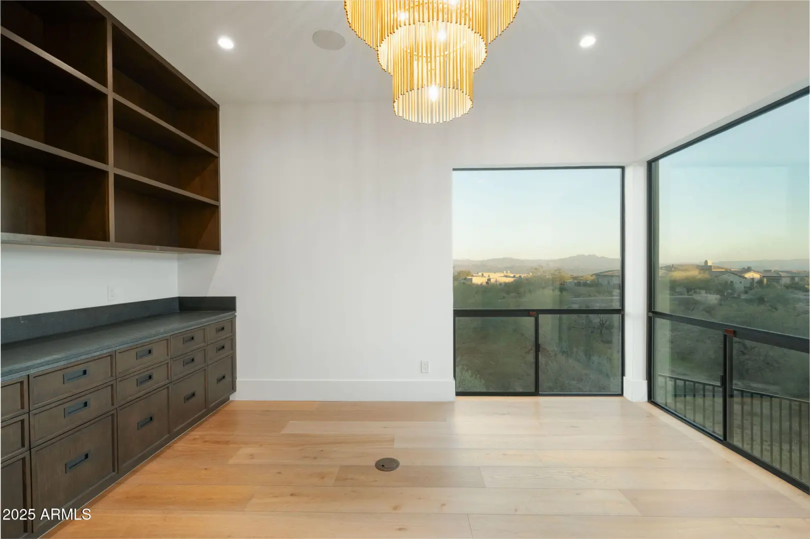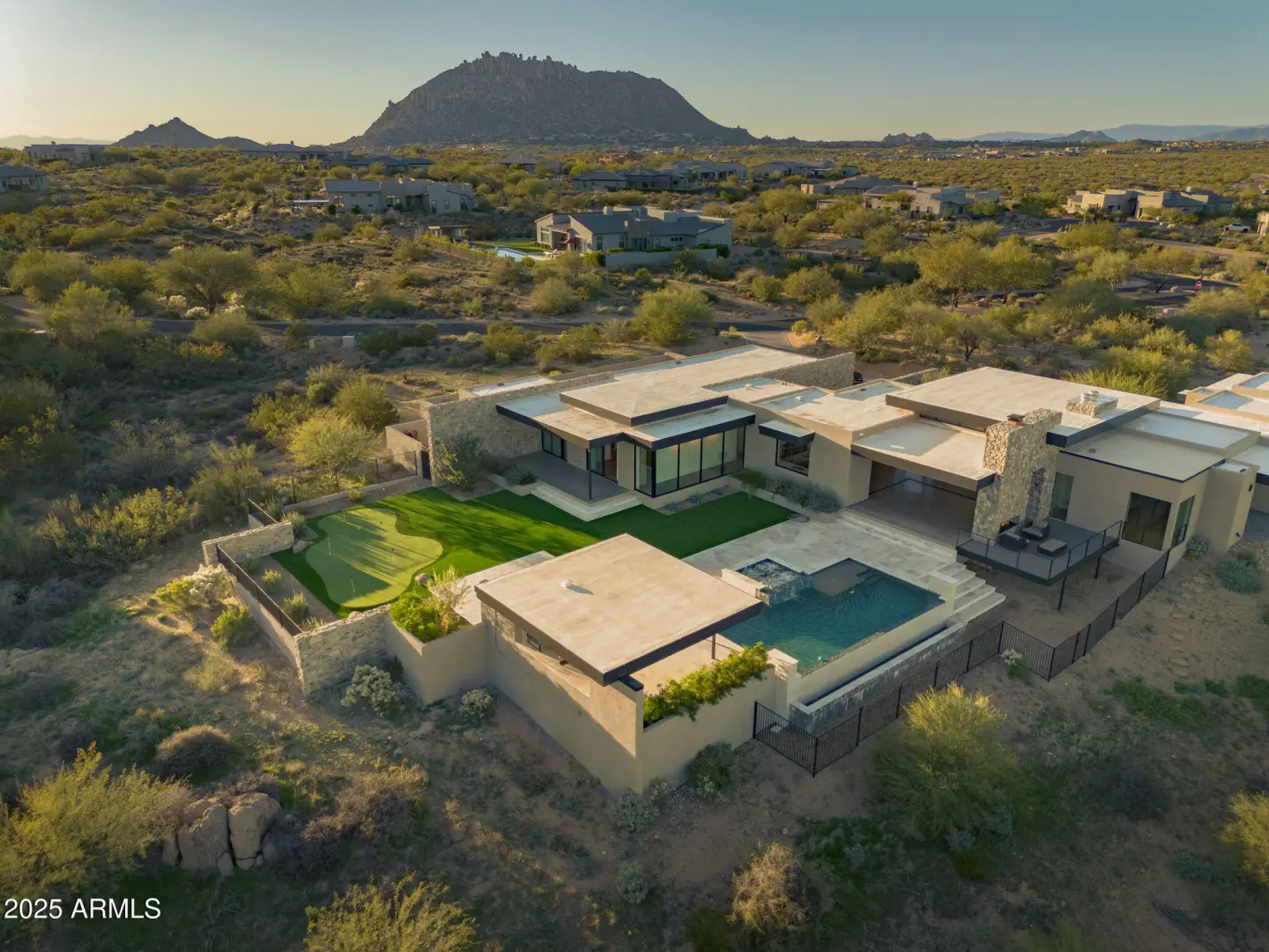 Experience elevated luxury in this custom Desert Modern home in Sereno Canyon, designed by Cosan Studio and built by Bolte Custom Homes and designed by renown interior designer Lauren Wallace. Set on a private 2.12-acre lot surrounded by protected desert, the home blends sleek contemporary lines with warm natural materials. A grand glass pivot door opens to a sun-filled great room with wide pocket doors for seamless indoor-outdoor living. The chef's kitchen features Wolf/Sub-Zero appliances and a striking quartz waterfall island, while the dining room includes a zinc bar and wine wall. The glass gallery corridor leads to a secluded primary suite with stunning McDowell Mountain views, spa bath, dressing closet, and patio.