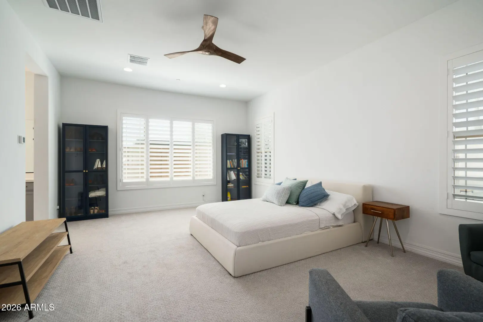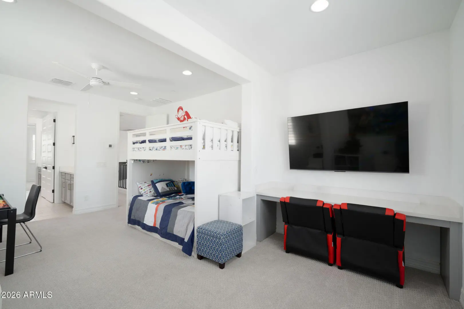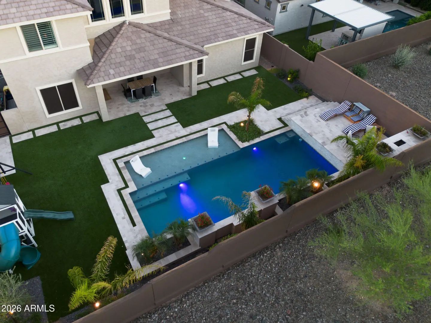 Functionality, pristine condition, and a rare opportunity in the Mystic community of Vistancia. Positioned on one of the largest corner lots, this home offers a layout designed for both everyday living and effortless flow. The expansive main-level primary suite serves as a true retreat, featuring a spacious and well-appointed design that feels both comfortable and refined. Upstairs, a split floor plan provides additional privacy along with flexible living space to fit a variety of needs. Two dedicated office areas offer versatility for work, wellness, or creative use. The open-concept design connects seamlessly to a resort-style backyard with a custom pool, expansive hardscaping, and stunning mountain views. Clean lines, elevated finishes, and intentional design makes this home standout!