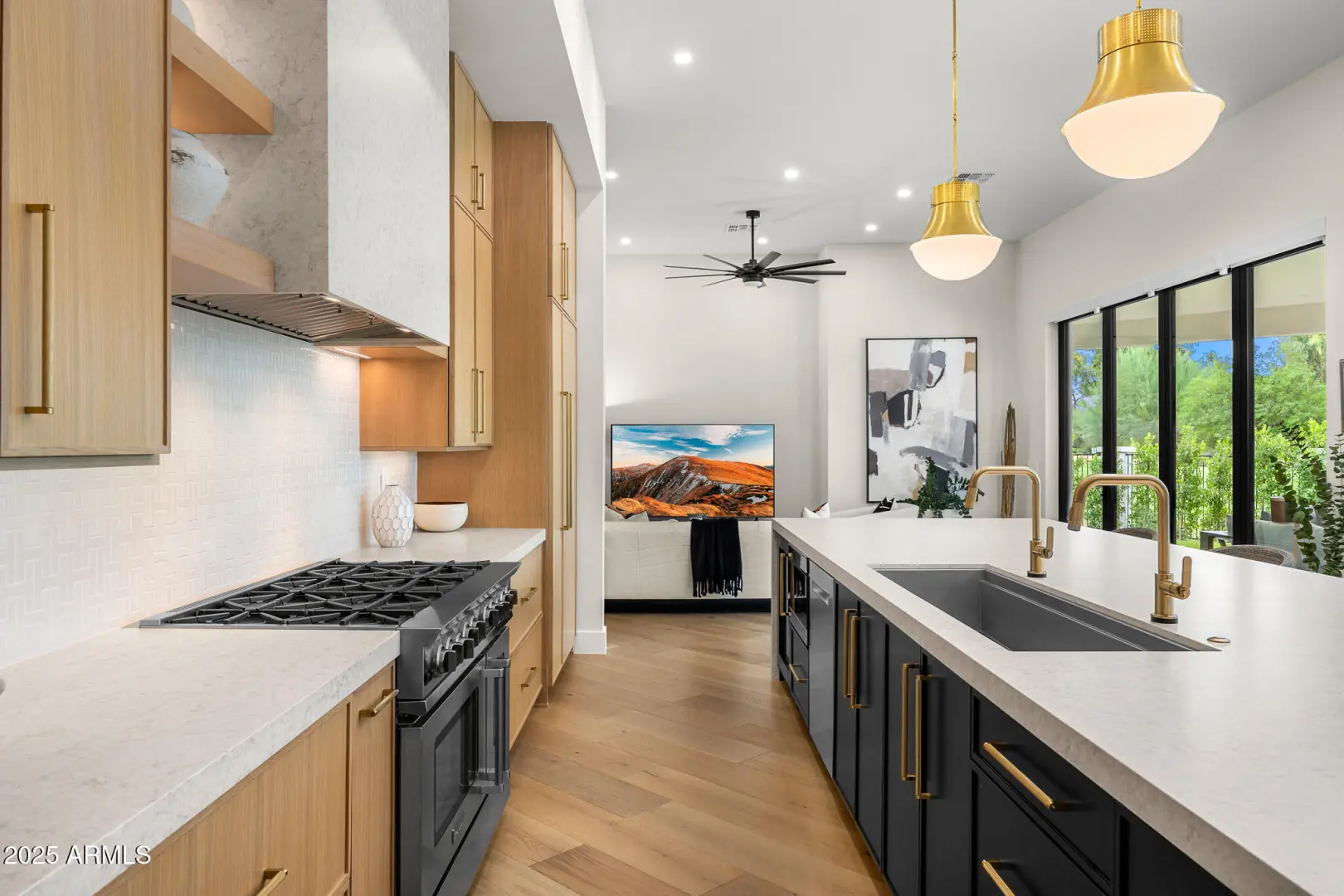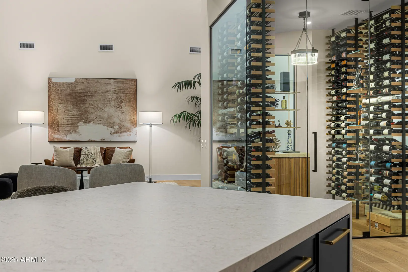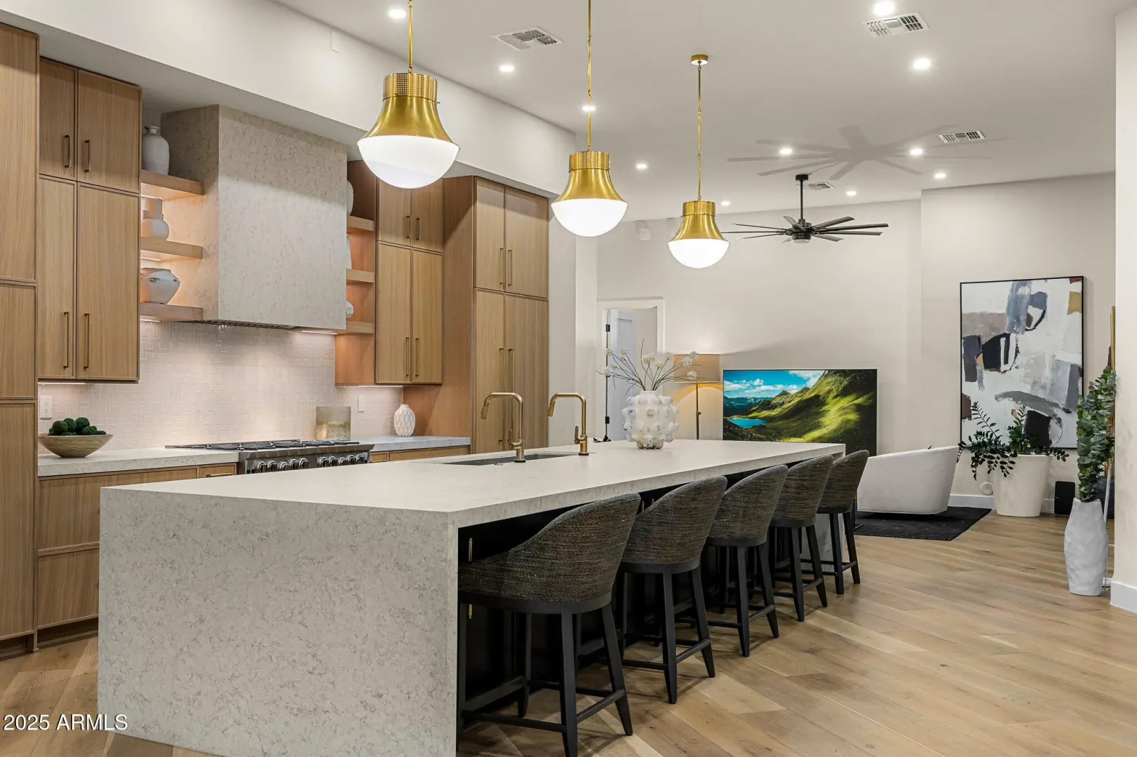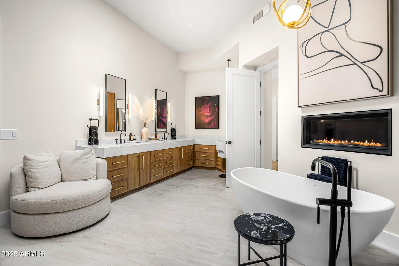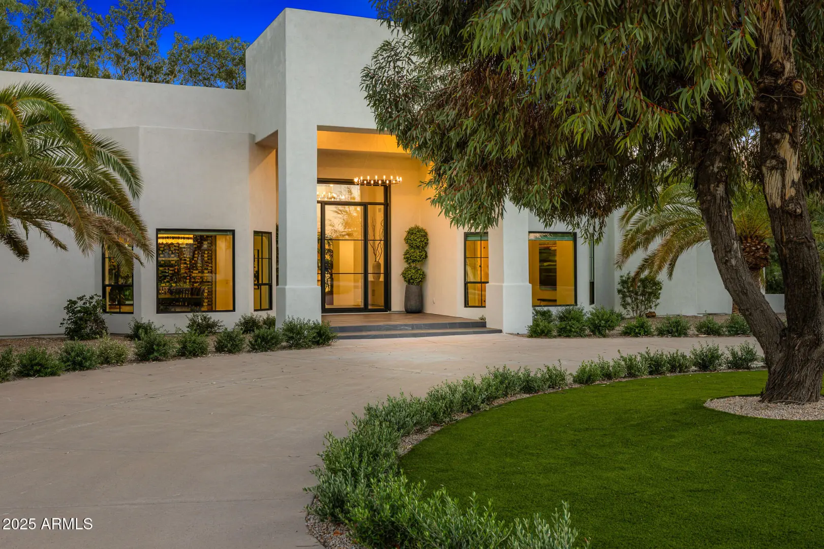 Straight out of the pages of a design magazine, this Paradise Valley showpiece defines modern luxury. Every element has been thoughtfully curated—from the impeccable designer finishes to the vast open floor plan framed by breathtaking views of Camelback and Mummy Mountain, alongside the lush fairways of the neighboring golf course. This 4 bedroom, 4.5 bathroom estate with an 8-car garage marries organic modern beauty with timeless elegance. The dramatic foyer welcomes you with soaring ceilings, a striking fireplace, and seamless sightlines to the outdoors. Accordion glass doors blur the boundaries between inside and out, creating the ultimate indoor-outdoor living experience. The chef's kitchen is both a statement and a sanctuary, featuring an oversized quartz waterfall island with