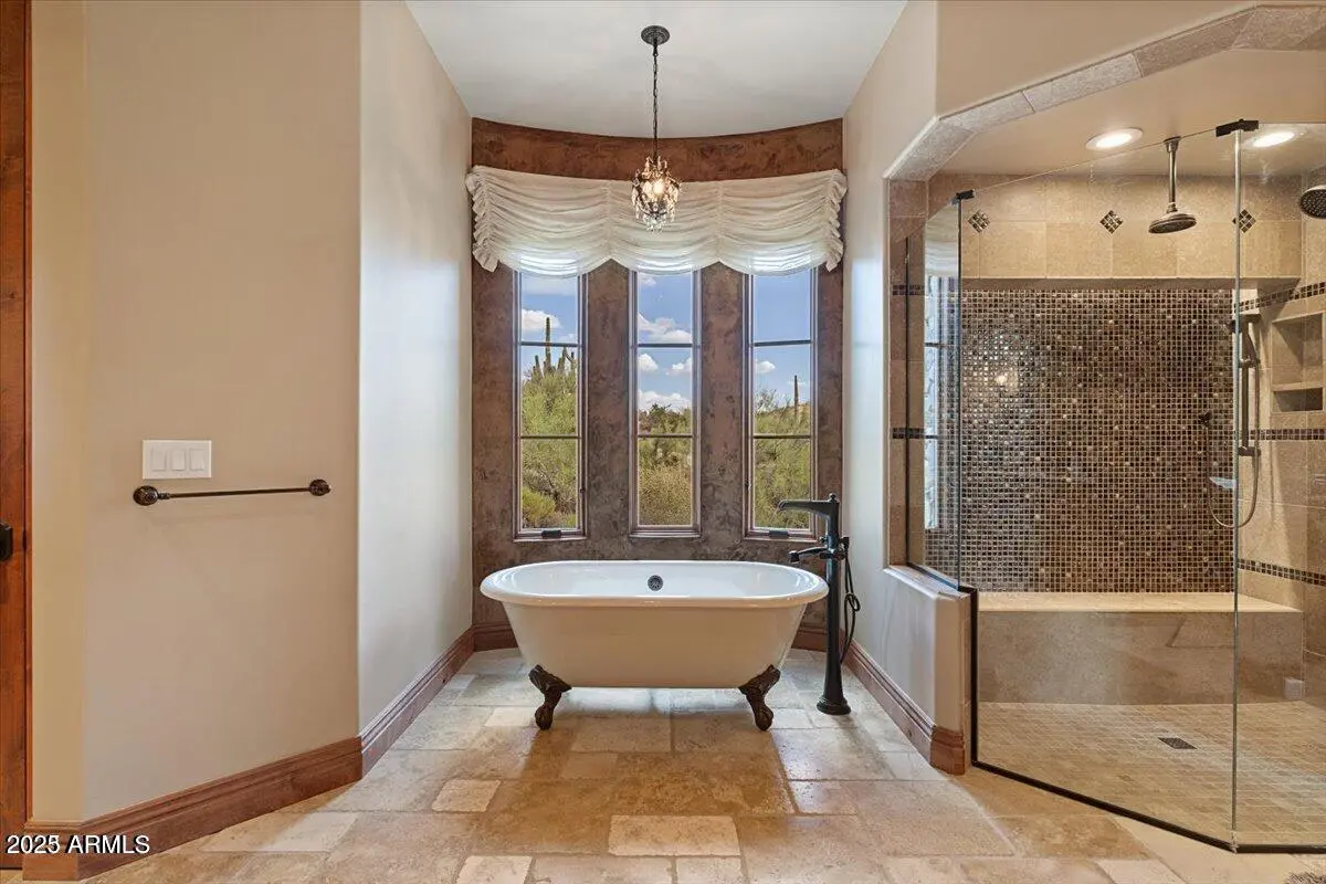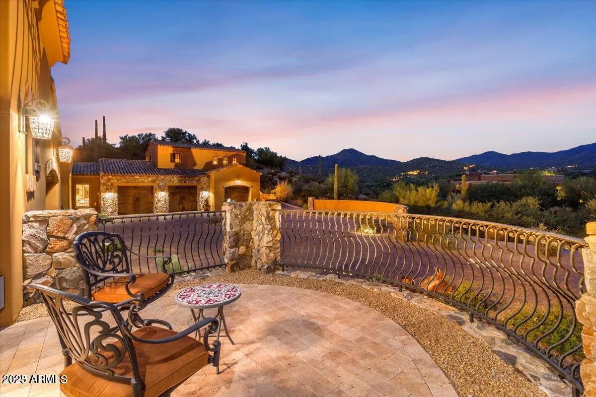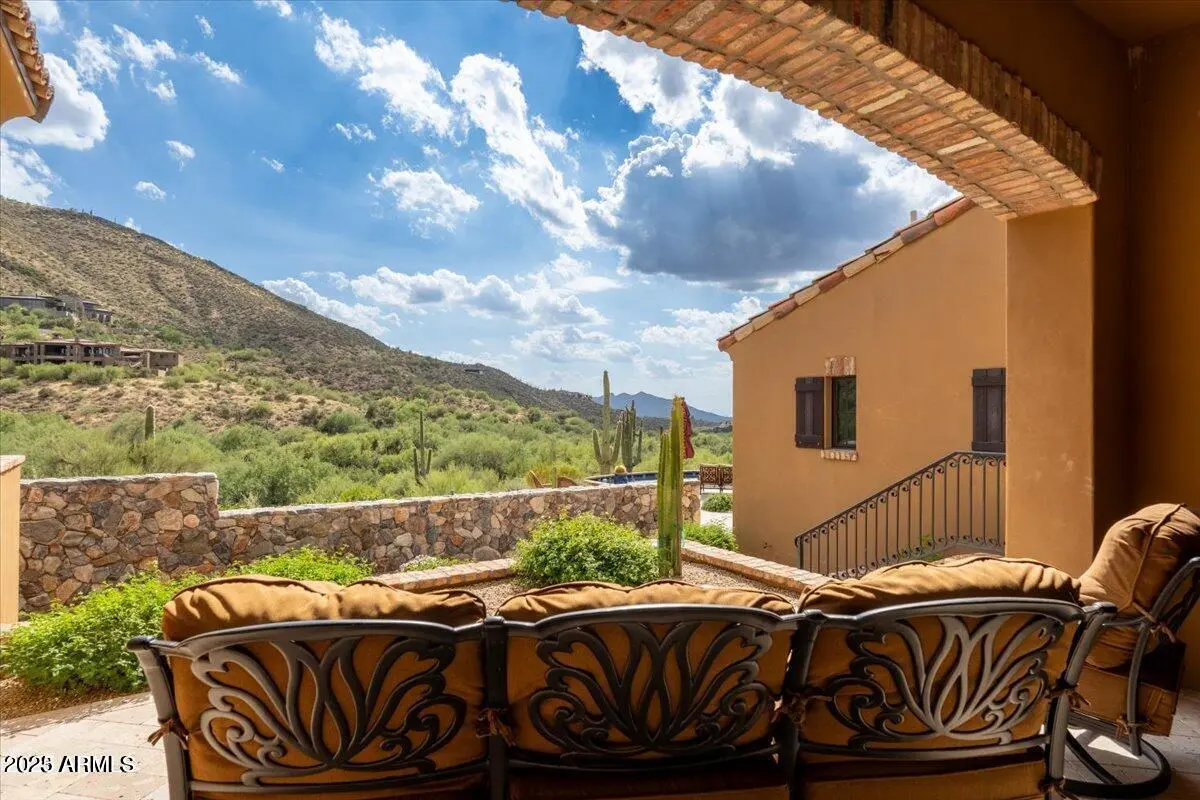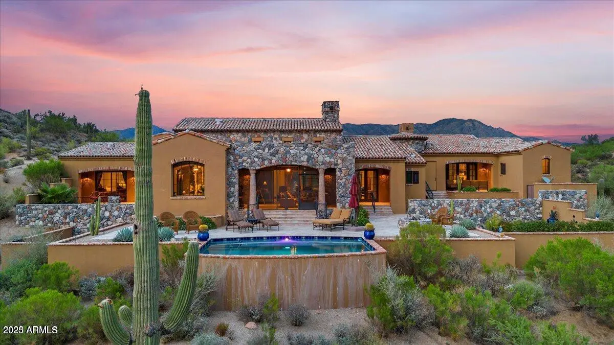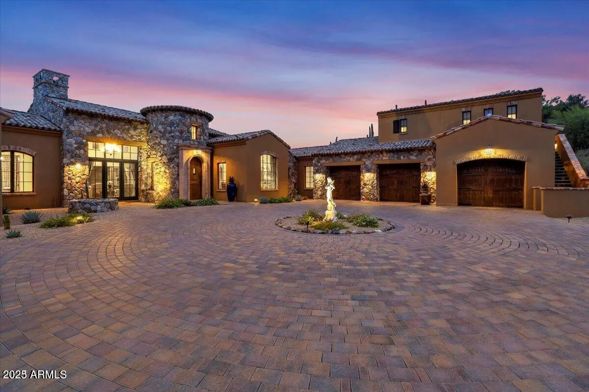 LIFESTYLE MEMBERSHIP AVAILABLE. Exquisite 2.2 acre Desert Mountain estate welcomes you with its brick lined circular driveway, old world feel and panoramic mountain views that do not stop! Elegance abounds with the extensive use of marble and stone finishes throughout, granite countertops, gorgeous tile flooring and well appointed bathrooms! The kitchen is an absolute DREAM and features a gas cooktop, double wall ovens and a wet bar with a pass through to one of the FIVE outdoor patios (one is screened in)! There are 3 bedrooms with ensuite baths in the main home, with a bedroom, bath and kitchen in the private 545 sq. ft. casita with separate entrance! Let the views of the Sonoran desert and stunning sunsets melt away your stress while soaking in the sparkling pool or spa!
