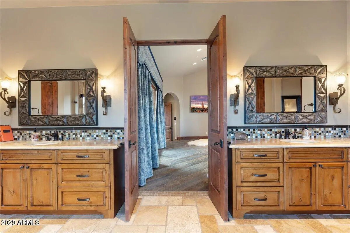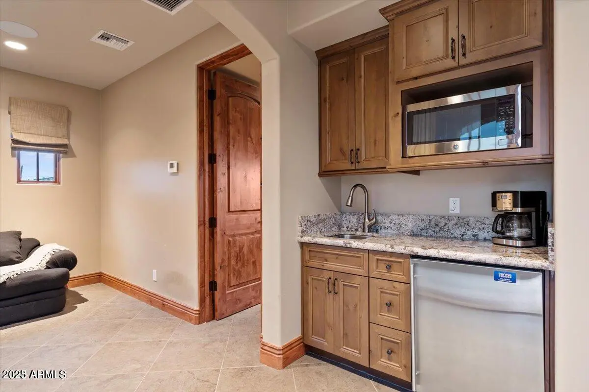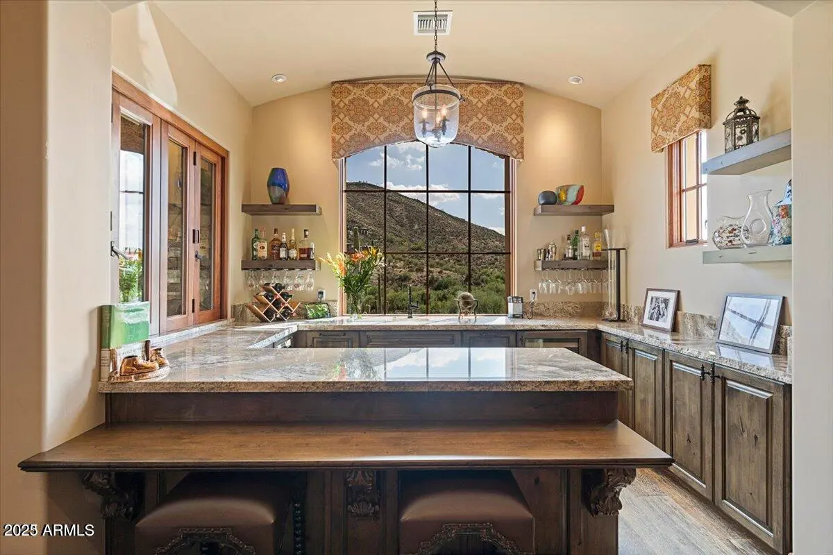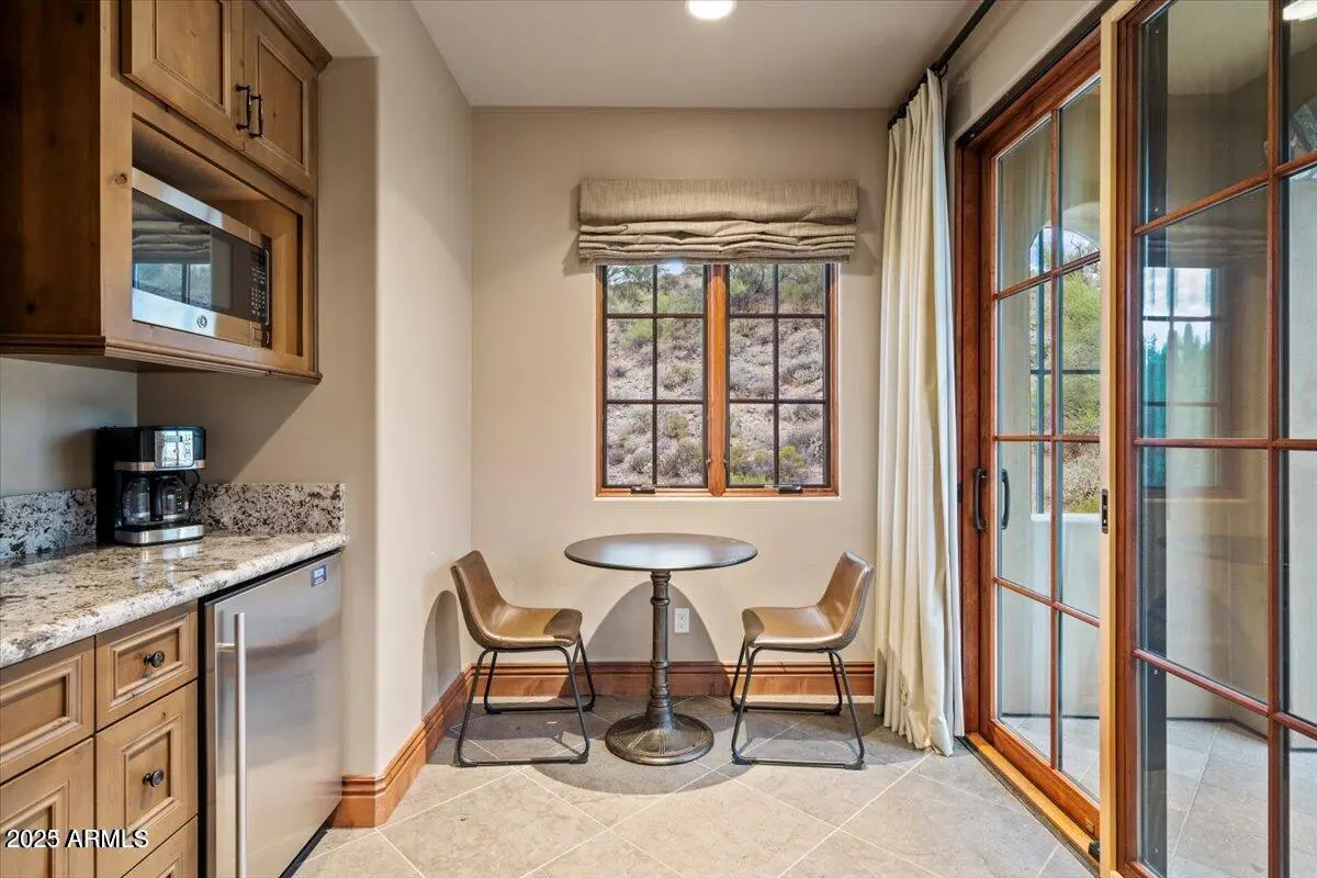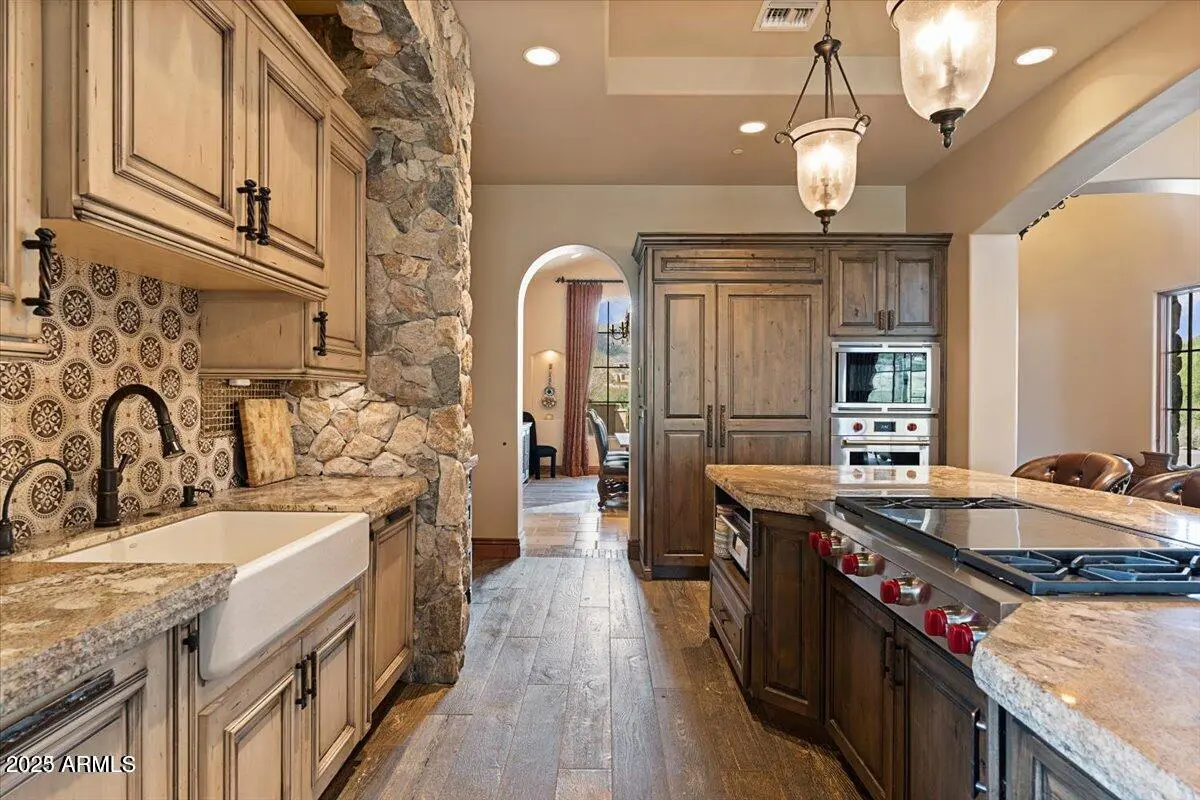 LIFESTYLE MEMBERSHIP AVAILABLE. Exquisite 2.2 acre Desert Mountain estate welcomes you with its brick lined circular driveway, old world feel and panoramic mountain views that do not stop! Elegance abounds with the extensive use of marble and stone finishes throughout, granite countertops, gorgeous tile flooring and well appointed bathrooms! The kitchen is an absolute DREAM and features a gas cooktop, double wall ovens and a wet bar with a pass through to one of the FIVE outdoor patios (one is screened in)! There are 3 bedrooms with ensuite baths in the main home, with a bedroom, bath and kitchen in the private 545 sq. ft. casita with separate entrance! Let the views of the Sonoran desert and stunning sunsets melt away your stress while soaking in the sparkling pool or spa!